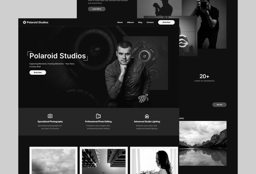 Welcome to Polaroid Studios, where every click captures a story. This sleek and modern template is designed for photographers, studios, or personal blogs. Showcase your work, offer your services, and more. The template comes with a CMS-driven menu for easy updates.