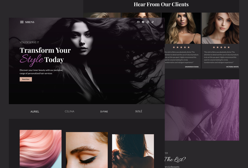 Unveil your salon's essence with Sirens, a chic and contemporary template tailored for hair salons, spas, and beauty websites. Show off your expertise, promote your services, and engage your audience effortlessly.